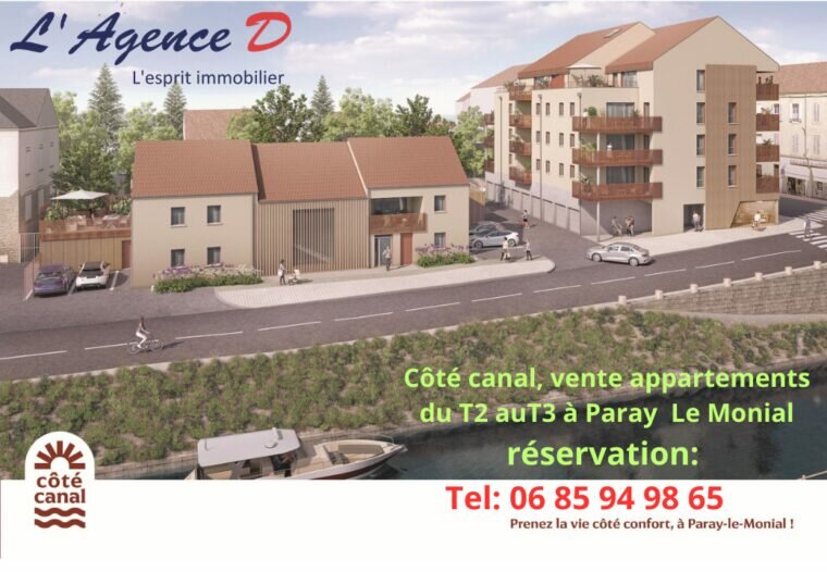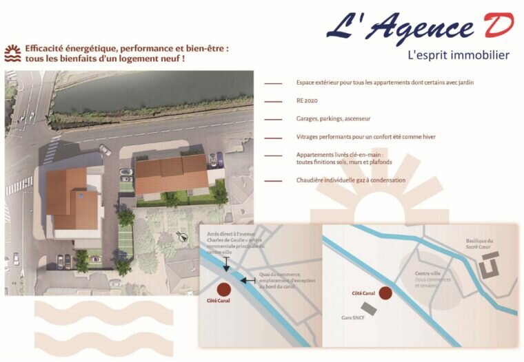 L’Agence D L’Esprit Immobilier Digoin 71160 vous présente, vente sur plan (VFA), Résidence Côté Canal 71600 Paray le Monial
