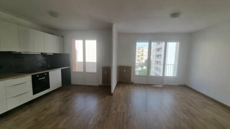 L’appartement est en très bon état et se compose d’une agréable pièce de vie avec cuisine équipée ouverte, créant un espace convivial et lumineux. La cuisine donne directement accès à un balcon, idéal pour profiter de l’extérieur.