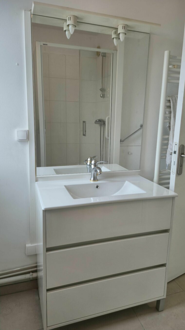 Il se compose, entée salon /séjour ouvert sur balcon, cuisine équipée indépendante, (four, hotte, plaque ).
