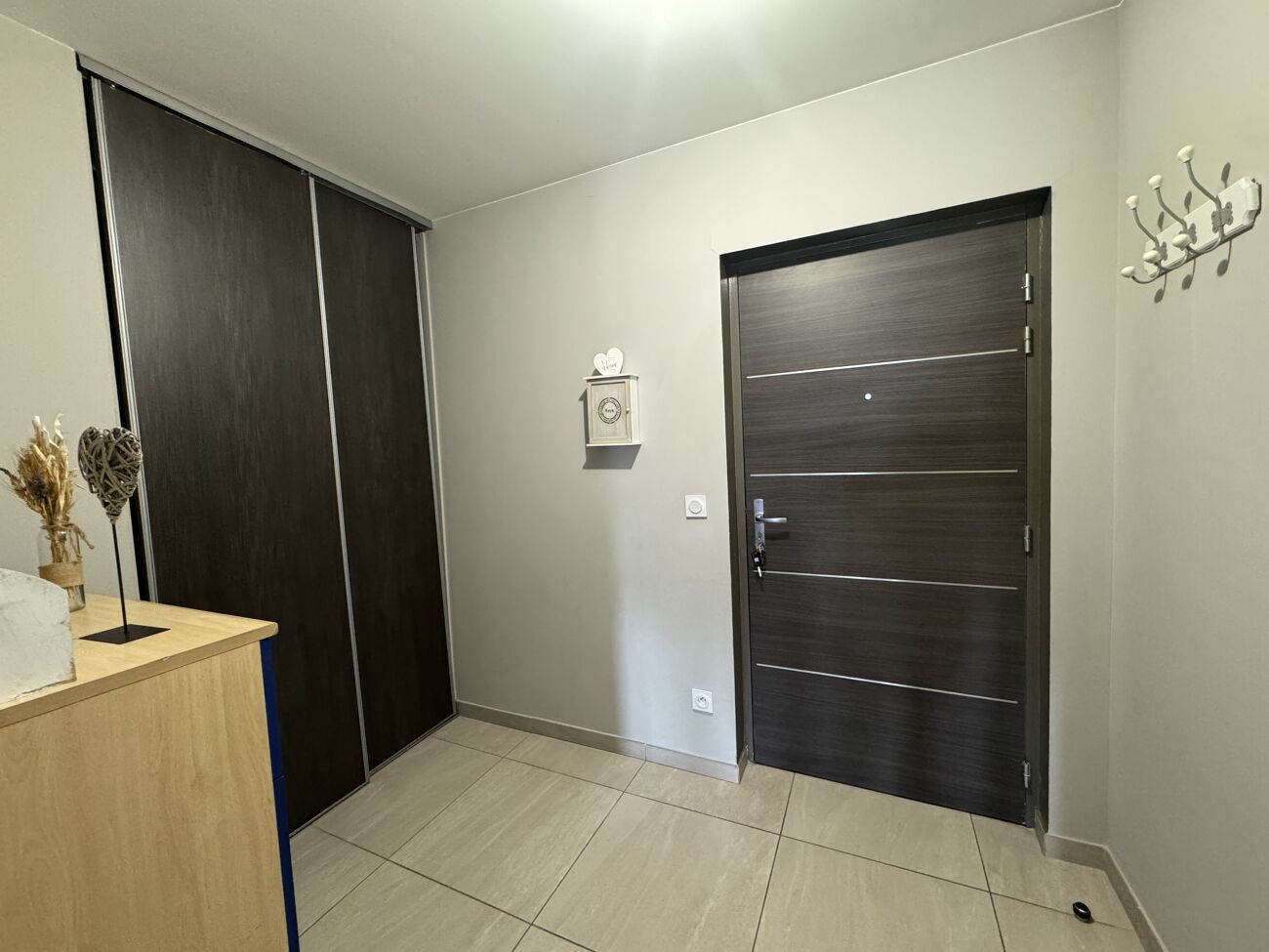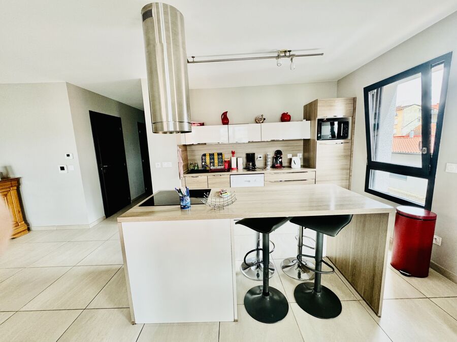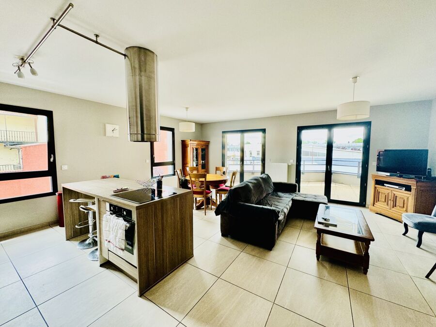 Appartement de Standing de construction 2014,1er étage avec ascenseur, d’une surface de 84 m²hb, grand hall avec placards, cuisine équipée US avec Ilo Central, ouverte sur belle et lumineuse pièce à vivre donnant accès sur terrasse plein sud, 2 chambres avec placards muraux, salle d’eau et wc indépendant. Très bon état. Ascenseur.