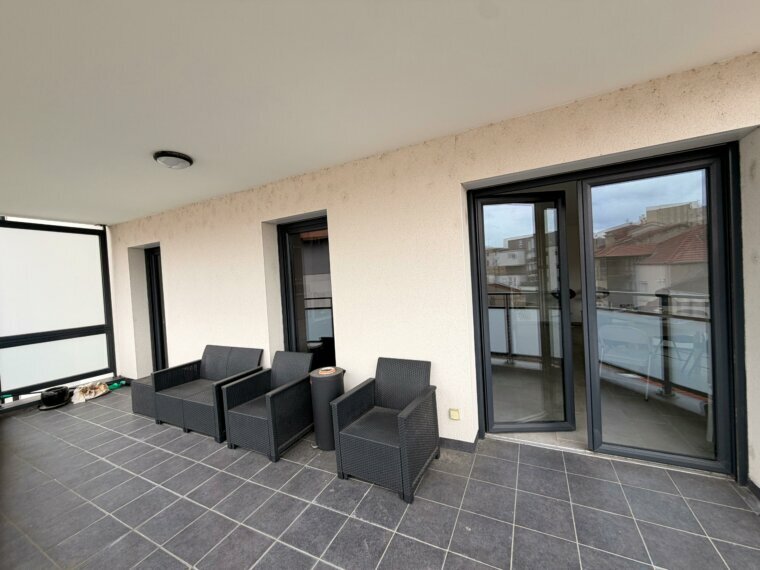 très beau T4 de 85 m², cuisine équipée ouverte sur pièce à vivre de 40 m², donnant accès sur belle terrasse de 13.60 m², 2 chambre dont 1 accès terrasse, salle d’eau avec douche, wc indépendant. Parking privé fermé avec barrière automatique. Très propre, libre début juin 2026.