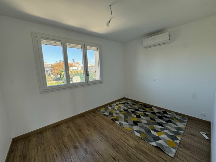 Rez de chaussé : 1 chambre + bureau, buanderie + garage Etage : hall, très belle cuisine neuve entièrement équipée ouverte sur pièce à vivre et coin salon avec grand meuble télévision encastrer dans mur. Toutes les menuiseries sont neuves avec VRE, élèctricité et plomberie refaites Chauffage avec clim réversible dans toutes les pièces. Isolation par l’exterieur avec crépis. Le tout sur terrain clos de 670 m² + cave exterieur et puits avec pompe sur wc.