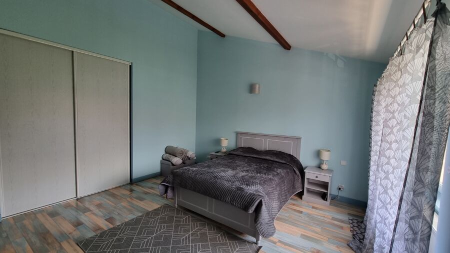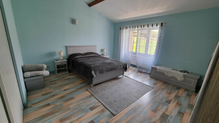 4 belles et grandes chambres avec possibilité d une 5 iem car tout est ok pour, il restera simplement à peindre les murs ainsi que de prévoir un revêtement sol, salle d’eau équipée d une baignoire d une douche et d’un WC. Chauffage, pompe à chaleur, poêle au bois, cheminée. Un puits, une cave. Garage, terrasse, le tout sur un terrain de 1920 m².