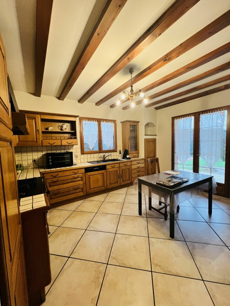 Au sous-sol, vous trouverez une buanderie, un garage et une cave. Le rez-de-chaussée se compose d’un vaste hall desservant un grand espace de vie avec une cheminée à foyer ouvert, une cuisine équipée, une salle d’eau, un bureau et des toilettes. À l’étage, vous découvrirez 4 chambres avec salles de bains et toilettes.