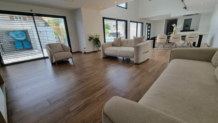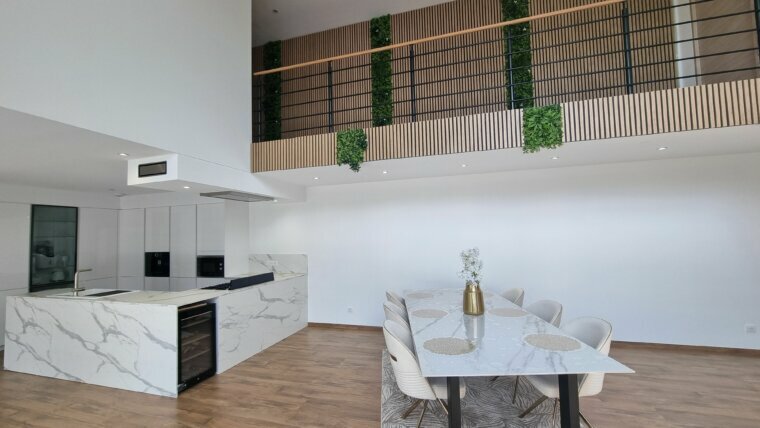 Villa contemporaine lumineuse récente au design moderne, de performances énergétiques de premier ordre (DPE A). Elle se compose: