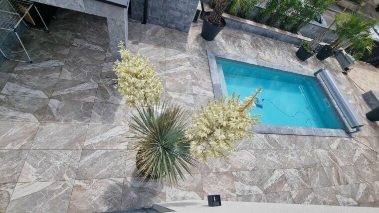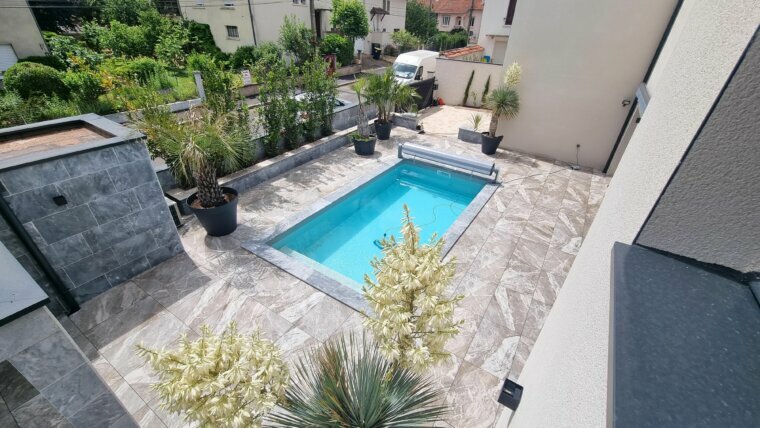 Elle bénéficie d’un garage entièrement carrelé et isolé de 35 m², Une piscine 6×3 chauffée, au sel, avec rideau et sécurité enfant.